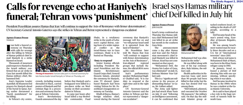 This operation follows a series of high-profile Israeli actions against regional targets, including a recent airstrike in Gaza that killed Hamas leader Mohammed Diab Ibrahim al-Masri (popularly known as Mohammed Deif) and a missile strike in Beirut that claimed the life of Hezbollah Commander Fuad Shukr. The death of Haniyeh is part of a broader Israeli campaign against militant leaders in response to recent attacks, including the devastating October 7 (2023) assault on Israel by Hamas.