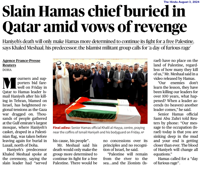 Political analysts have opined that as Israel has continued to increase its provocations with its latest assassination of the Hamas leader, the move has jeopardised ceasefire talks, apart from raising the prospects of spreading its war in the Gaza Strip into a regional conflict.
