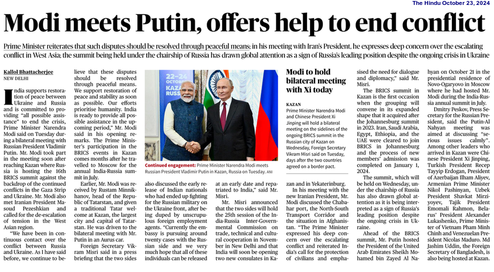 Iran, as a foe of the US, is closely allied with Russia on various regional and international issues. Reports suggest that Tehran and Moscow signed a strategic agreement during President Pezheshkian’s stay in Kazan. For India, it has become important to play a balancing act as the South Asian nation considers both Iran and Israel as friends. In recent times, India has repeatedly expressed concern in various forums that the armed conflict between Iran and Israel should not spread to the entire region. New Delhi is well aware of the fact that a regional conflict would have a serious impact on global crude prices, international trade and political stability in West Asia.