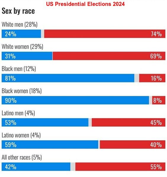 Trump successfully managed to instil the fear of outsourcing, layoffs, recession and decline of manufacturing sectors among the working class. At the same time, he promised to control inflation and to provide people with financial security. A huge number of working-class people have voted for Trump due to the fear of losing their jobs. Overall, the lower middle-class and middle-class voters have responded to his appeal. Trump has performed really well even in Pennsylvania, the State dominated by Coloured people and the Hispanic-speaking Latinos!
