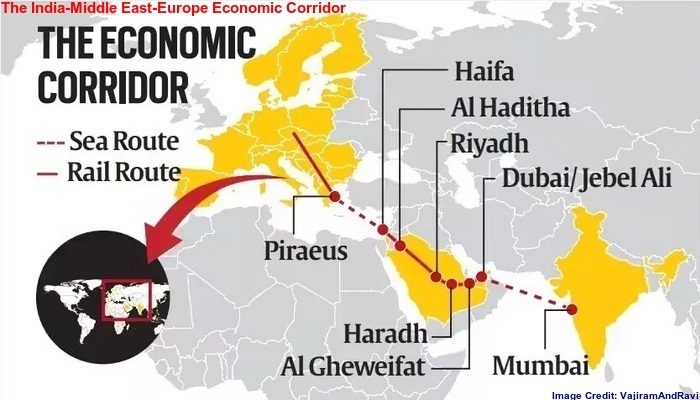 The 2023 G20 Summit in India decided to build another corridor, the India-Middle East-Europe Economic Corridor (IMEC) in order to connect the South Asian nation to Europe. This corridor would begin from western Indian city of Mumbai and end in Greece through the Mediterranean Sea over West Asia. As per the original plan, the IMEC shall connect the Indian ports of Mumbai and Mundra to the UAE by waterway. From the UAE, the cargo shall reach Haifa Port of Israel via Saudi Arabia and Jordan by rail. Then, the export items shall be transported to the Port of Piraeus in Greece through the Mediterranean Sea.