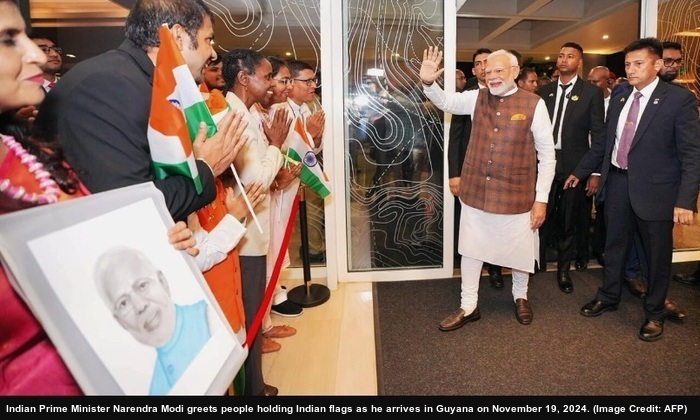 A large number of people of Indian origin live in Guyana, a country on the northern coast of South America. Nearly 43.5% (or 0.32 million) of the total population of this country are of Indian origin whose ancestors were brought to Guyana by the colonial British rulers as slaves (under indenture contracts from 1838 until the end of the system in 1917). The visit of Narendra Modi to Georgetown on November 19, 2024 on a three-day trip was the first by an Indian Prime Minister in 56 years. Dr Mohamed Irfaan Ali, the President of Guyana, and some of his ministers were present at the airport to receive the Indian PM. Political analysts believe that the historic visit of Prime Minister Modi to Guyana shall be a game changer as far as diplomacy is concerned.