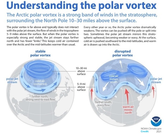 Although the polar vortex remains confined to a specific location and moves between certain areas, Global Warming makes the region warm and (comparatively) hot wind moves southward (to the US, Canada and Europe). Hence, scientists believe that the disruption of temperature variability due to Global Warming would increase the incidences of polar vortex. It would gradually move beyond the US and Europe, and the entire world would be covered in snow at some point!