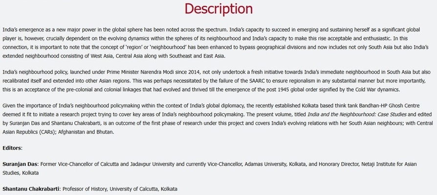 India and the Neighbourhood: Case Studies, the recently published book co-edited by Suranjan Das and Santanu Chakraborty, is a much-needed addition to the analysis of South Asian politics. This publication deals mainly with case studies of India and two of its neighbours. Through various chapters, the authors have shown that the Indian foreign policy has evolved in a certain pattern since the Cold War.