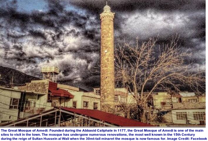 In fact, the history of Amedi dates back at least BCE 3,000 as it was the capital of the Kurdish Bahdinani Emirate from AD 740 until AD 1842, when it came under Ottoman rule. In 1924, it became a district of the Province of Mosul after the Iraqi State was founded. Amedi is famous for its urban structure, gates, walls and mosques. The Great Mosque of Amedi was founded in AD 1177 during the Abbasid Era.