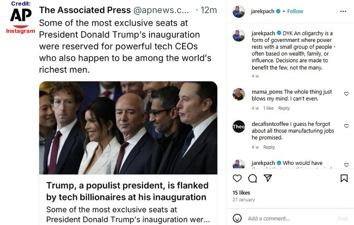 It may not be right to blame only Donald Trump for the rise of oligarchy in the US. One should also consider the number of billionaires who sponsored the electoral campaign of Joe Biden in 2024.