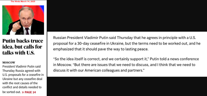 The March 11, 2025 meeting between the US and the Ukrainian representatives in Jeddah (Saudi Arabia), where a 30-day ceasefire was agreed to, has shifted the global attention, yet again. However, who is actually doing the shifting? Reports now abound that after Tuesday’s agreement, “the ball is in Russia’s court“. Former British Prime Minister and notorious anti-peace fanatic Boris Johnson said on March 12: “The Ukrainians have proved that they can make peace. Now it is up to the Kremlin to sign up to the Trump plan – or face the consequences. If (Russian President Vladimir Vladimirovich) Putin refuses, we will know that he is not serious about peace and never was.“