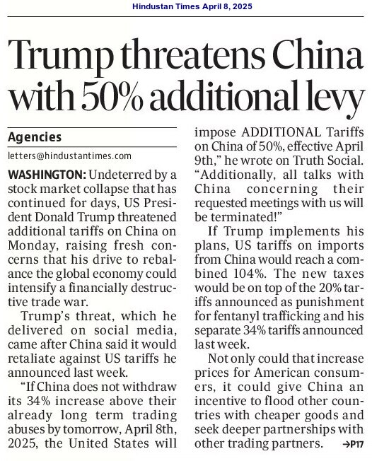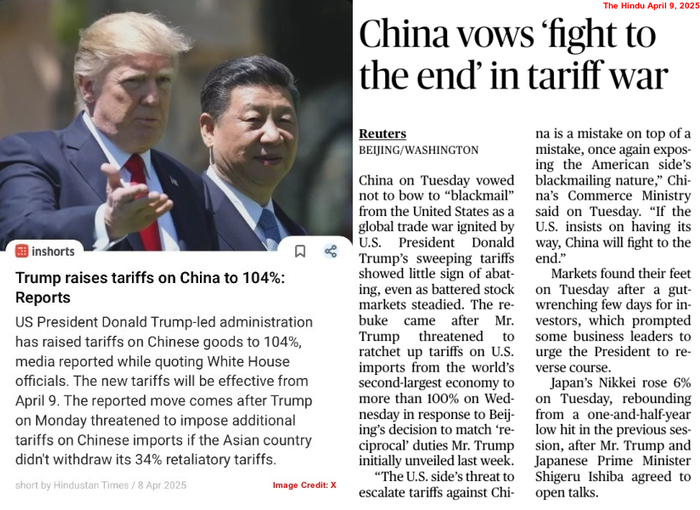 The Tariff War between the US and China took a new turn on April 8, 2025, with US President Donald John Trump imposing 50% additional tariff on the Asian powerhouse. Trump triggered the trade war on April 2 by imposing a 34% tariff on goods exported from China (to the US). Beijing, too, imposed a 34% tariff on US products on April 3 as a countermeasure. Five days after China made the move, the US President announced that his administration would impose an additional 50% tariff on Chinese goods from April 9 (if Beijing sticks to its decision). Meanwhile, the Xi Jinping Government has hit back at President Trump’s decision to impose 104% tariff on Chinese products, claiming that the US is making “mistake on top of a mistake“.