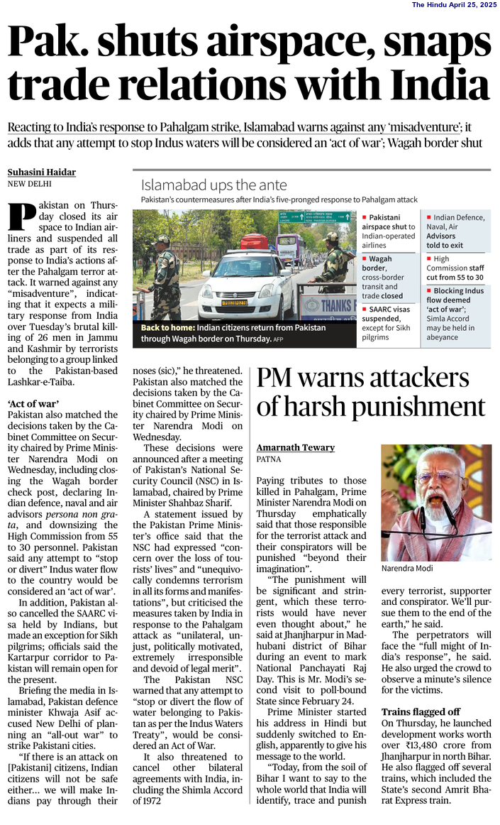 The Taliban leadership in Kabul has rightly said that “such acts threaten regional peace and stability”. Simultaneously, the very existence of Kashmir has also been plunged into doubt. The livelihoods of the common Kashmiri people, who depend mainly on the tourism industry, have been severely affected. The impoverished valley is stunned by panic, grief and despair.