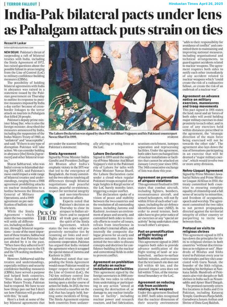 Meanwhile, the Pakistani defence minister blamed India for trying to trigger a crisis in Pakistan (and also in the entire region) after the April 22 (2025) Pahalgam terror attack (in India-administered Kashmir) that claimed 26 innocent lives. Responding to a question about whether Lashkar-e-Taiba (LeT) was behind the terror attack in Pahalgam, he stressed: “Lashkar is an old name. It does not exist… Our government has condemned it (Pahalgam attack) categorically. Pakistan has been the victim of terrorism for decades.“