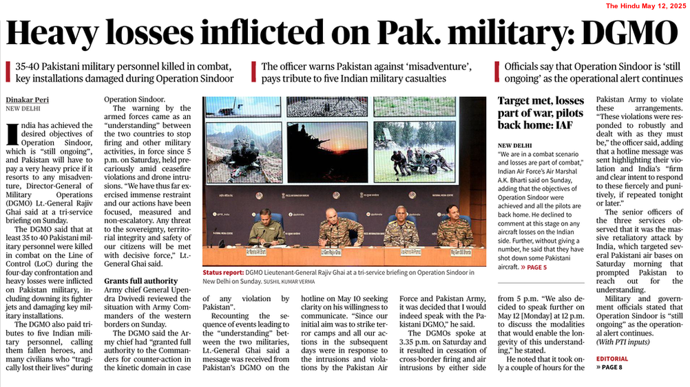 Immediately after India’s retaliation, Pakistani Defence Minister Khawaja Muhammad Asif announced that his country’s military was “ready to refrain” from further action, “provided India halts its ongoing operations“. However, General Munir reportedly asked the Army to target the Indian military bases with drones and missiles on May 7.