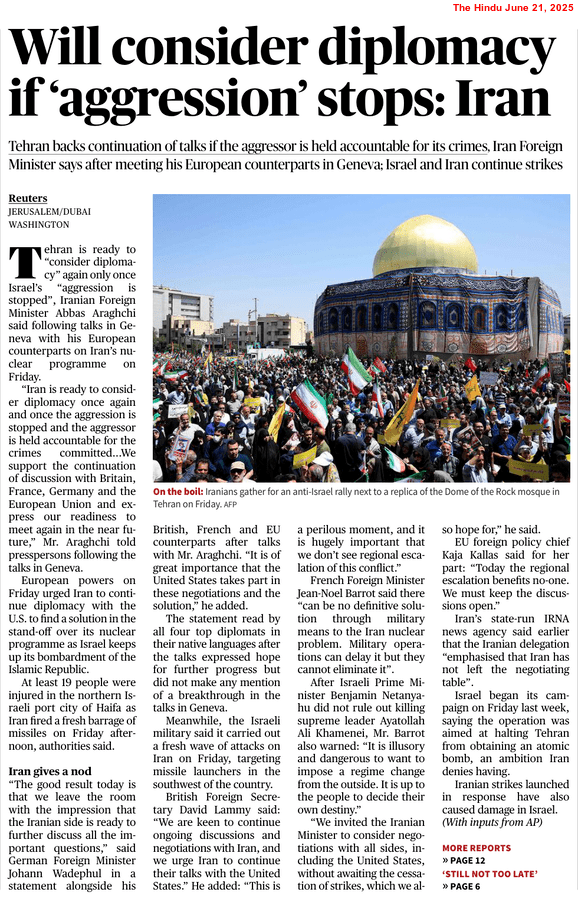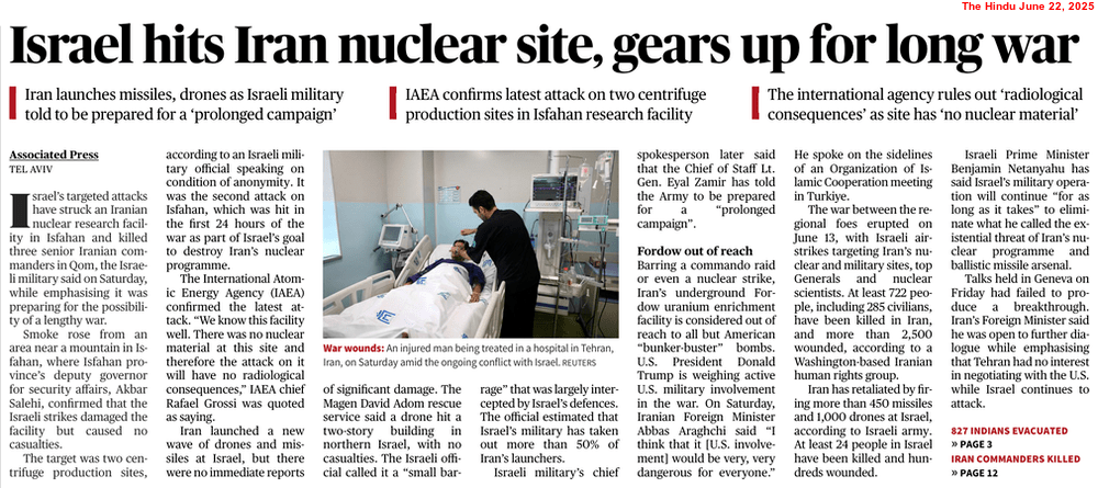 Soon after the US attacked the Iranian nuclear facilities, Director General of the International Atomic Energy Agency (IAEA) Rafael Mariano Grossi called an emergency meeting on June 23, 2025. Earlier, Iranian Foreign Affairs Minister Sayyid Abbas Araghchi strongly condemned the US attack, stating: “The United States, a permanent member of the United Nations Security Council, has committed a grave violation of the UN Charter, international law and the NPT by attacking Iran’s peaceful nuclear installations. The events this morning are outrageous and will have everlasting consequences. Each and every member of the UN must be alarmed over this extremely dangerous, lawless and criminal behaviour.” He added: “In accordance with the UN Charter and its provisions allowing a legitimate response in self-defence, Iran reserves all options to defend its sovereignty, interest and people.”