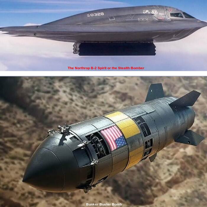Reuters reported that the US dropped at least six Bunker Buster bombs (also known as the GBU-57 series Massive Ordnance Penetrator (MOP)) on Fordow nuclear facility from the Northrop B-2 Spirit aircraft. The Stealth Bomber is capable of carrying 15 tonnes of bombs and of performing attack missions at altitudes of up to 50,000 feet.