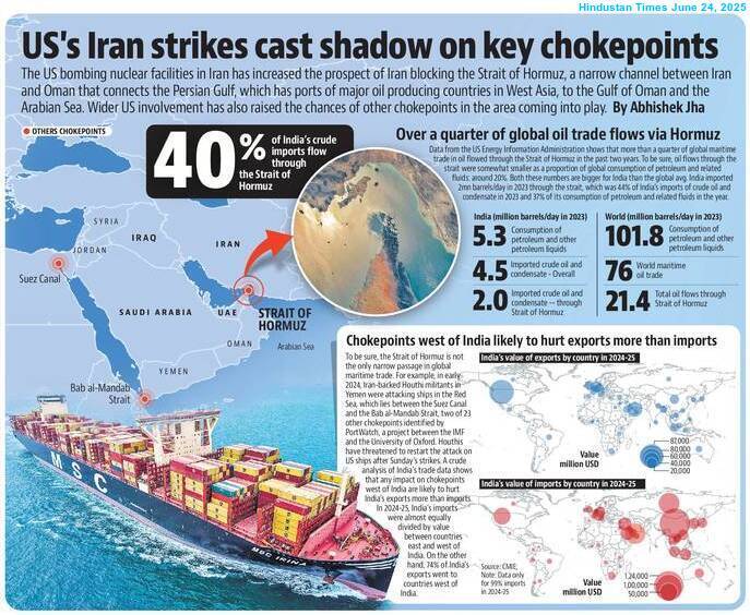 What if both maritime routes and airspace remain closed at the same time? This is the biggest worry for the global economy because of Iran’s ongoing conflict with Israel and the US. The Strait of Hormuz, which separates Iran from the Arabian Peninsula, is considered a strategically important waterway especially for the global petroleum trade. According to the International Energy Agency and the US Energy Information Administration, approximately 20 million barrels of oil or roughly 20% of the world’s total oil trade pass through the Strait of Hormuz daily. Hence, this crucial waterway is vital for the global energy supply, as it is the only route for various oil-producing nations in the Persian Gulf to export oil. Iran has repeatedly threatened to close this route, if Israel escalates attacks on the Islamic Republic.