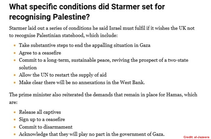 Amid famine situation in the Gaza Strip, Prime Minister Starmer announced on July 29, 2025 that Britain would recognise the State of Palestine by September, unless Israel takes “substantive steps” to end its war on Gaza and commit to a genuine peace process. Immediately after an emergency Cabinet meeting, the Starmer Administration issued a statement, mentioning that the recognition could take place before the UN General Assembly (UNGA) in New York.