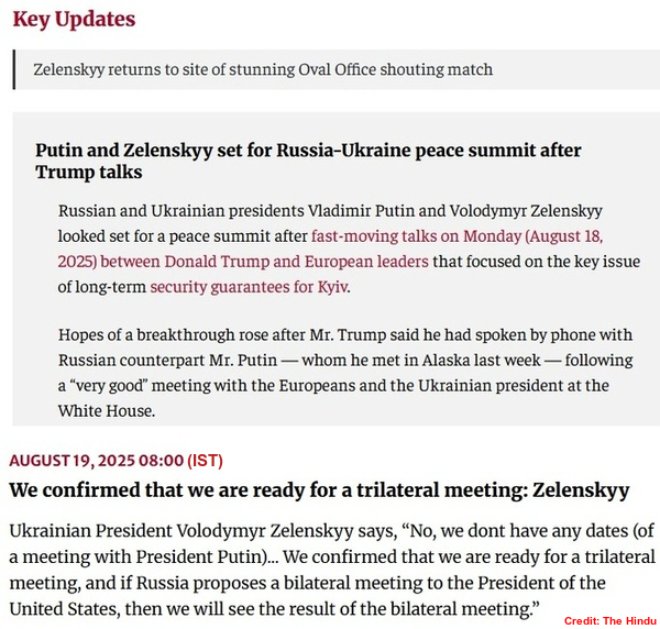 It may be noted that Russia launched drone attacks on four Ukrainian cities, killing at least 12 people, ahead of the Trump-Zelenskyy meeting in Washington DC on August 18. An entire family, including a toddler and a 16-year-old, were among seven people killed in the overnight drone strike on a residential neighbourhood in the northeastern city of Kharkiv. The attack also injured 20 people, including six children. Later, President Zelenskyy wrote on X: “Putin will commit demonstrative killings to maintain pressure on Ukraine and Europe, as well as to humiliate diplomatic efforts.”