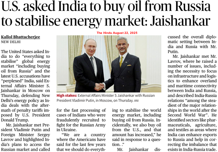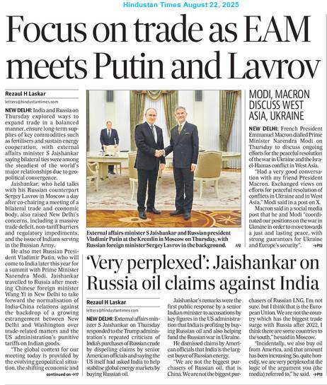 Significantly, Indian Minister of External Affairs Dr Subrahmanyam Jaishankar and National Security Adviser (NSA) Ajit Doval visited Moscow after the US President imposed 50% tariffs on Indian products. President Putin held separate meetings with the two Indian officials to discuss various aspects of bilateral ties. Dr Jaishankar visited Moscow on August 19-21, 2025 to co-chair the 26th Session of the India-Russia Inter-Governmental Commission on Trade, Economic, Scientific, Technological and Cultural Cooperation (IRIGC-TEC). Speaking at the event, First Deputy Prime Minister of Russia Denis Valentinovich Manturov said that Moscow was counting on expanding nuclear energy cooperation with New Delhi. He also said that the demand for new products was being created in his country for urbanisation and modernisation, inviting Indian companies to seize this opportunity. He expressed hope that a Free Trade Agreement (FTA) between the two countries would remove all obstacles. Interestingly, Griva announced additional 5% concessions on the sale of crude oil to India hours after Dr Jaishankar’s arrival in Russia.