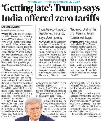 Indian products have become more expensive in the US market because of additional tariffs imposed by President Trump, making it difficult for India to export goods to the US. In such a situation, the Russian Embassy in New Delhi has hinted that Moscow might open its market for Indian products. The Russian Embassy has also projected a 10% annual growth rate for bilateral trade. This forecast indicates strengthening economic ties and potential expansion of cooperation in various sectors, including energy, defence and technology, between India and Russia.