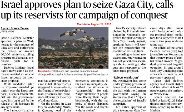 Meanwhile, the decision of the Israeli Cabinet to expand the war and seize full control of Gaza City has triggered a dire humanitarian crisis in the Palestinian territories. The global community alleges that Israel is actually committing genocide against the Palestinians. Global outrage has intensified over Israel’s forced starvation that caused famine and the deaths of children from malnutrition. Even France, the UK and Canada, popularly known as closest allies of Israel, have demanded a ceasefire and promised to recognise Palestinian Statehood. However, Benjamin ‘Bibi’ Netanyahu, the discredited Prime Minister of Israel who is facing an arrest warrant at the International Criminal Court, has not paid any attention. He has claimed that there is no starvation in Gaza even as images of skeletal children have shocked the world.