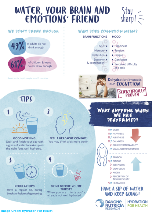 According to the study conducted by researchers at Liverpool John Moores University, drinking less water causes the body to lose more fluids than it takes in, upsetting the balance of water and essential mineral salts (electrolytes), leading to dehydration. The imbalance disrupts normal bodily functions, affecting everything from nerve and muscle operation to blood pressure regulation, and can also result in symptoms, like fatigue, dizziness, confusion, etc. In severe cases, it can also lead to serious health complications. Just as water is essential for the body, so are various mineral salts, like sodium, potassium, chloride, calcium, magnesium, etc., which regulate water balance and nerve function. Drinking less water primarily reduces blood volume that impedes nutrient and oxygen delivery to the brain, leading to cognitive impairment and mood swings (by increasing the secretion of cortisol).