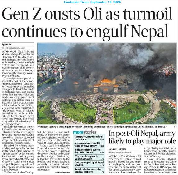 Political analysts are of the opinion that corruption and frustration (among common people) prompted Generation Z to trigger the fall of the government in Kathmandu on September 9, 2025. Protesters have claimed that Oli, who served as the 38th Prime Minister of Nepal from 2015 to 2016, 2018 to 2021, and 2024 to 2025, became a dictator long ago.