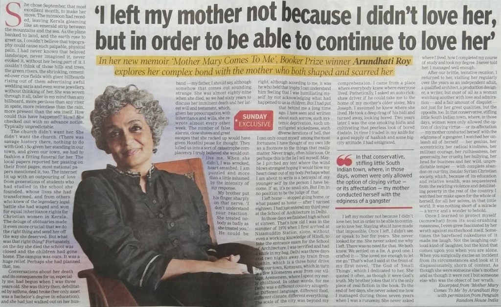 Is it possible for a person who protects others to act like a storm? Suzanna Arundhati Roy, the Indian author best known for her novel The God of Small Things that won the Booker Prize for Fiction in 1997, does not give any specific answer to this in her recently published book Mother Mary Comes to Me. Instead, she has left various clues throughout the 374-page publication for readers to reach a conclusion. In her first work of memoir, Roy has described her complex relationship with her mother that has shaped her personality. She has described her mother as “my shelter and my storm“!