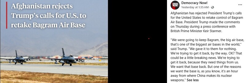 The Bagram airbase is strategically quite important for the US as it is situated near a nuclear power plant of neighbouring China. It was one of the largest US military bases in Afghanistan. The Taliban took control of Bagram in 2021 when the US withdrew its Armed Forces from the war-ravaged country. President Trump, all of a sudden, declared that he would like to get the airbase back during a joint press conference with British Prime Minister Sir Keir Rodney Starmer in London in the third week of September 2025.