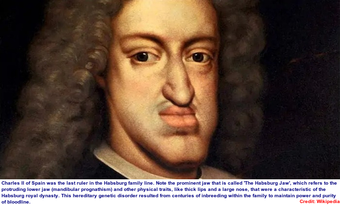 হ্যাবসবার্গ চোয়ালের কথা অনেকেই জানেন। মুখের এই বিকৃতি এসেছে শতাব্দীর পর শতাব্দী ধরে অন্তঃপ্রজননের কারণে। এদের বাচ্চারা অনেকে বেশিদিন বাঁচতো না।