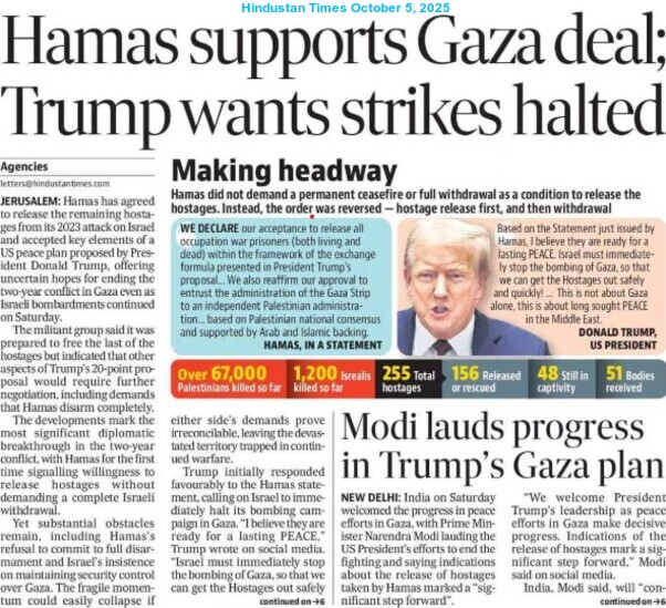 Meanwhile, BBC has reported that people in Gaza have reacted with shock after the US President appeared to welcome Hamas’ response to his peace plan for the territory. Hundreds of Palestinians flooded social media accounts and messaging apps with questions like: “Has the war ended?” and “Is this a dream or reality?“