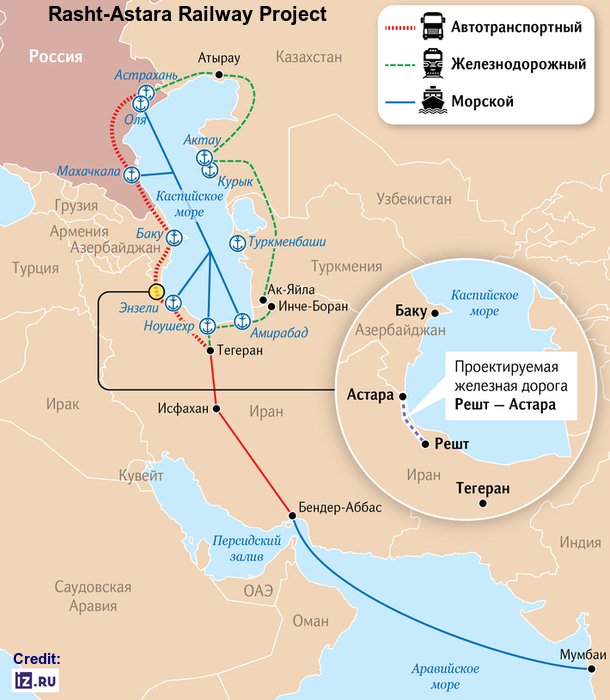 The railway connectivity from Rasht, the largest Iranian city on Caspian Sea coast, to Astara, the capital of the Astara District of Azerbaijan, is basically a part of the International North-South Transport Corridor (INSTC) that is expected to reduce overall freight costs by approximately 30% compared to the traditional Suez Canal route. According to experts, the Rasht-Astara railway service would significantly reduce transit times from the current 30-45 days (or sometimes up to 60 days via the Suez Canal route) to approximately 15-24 days. Hence, the project could bring a huge relief to the two economies (Russia and Iran) that have been badly hit by Western sanctions.