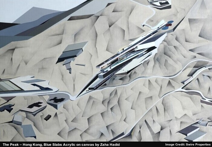 In the early days of her career, Hadid was greatly inspired by Russian painter Kazimir Severinovich Malevich (February 23 (O.S. February 11, 1879 – May 15, 1935) and his Suprematist Movement, which encouraged her to use abstraction and geometric shapes as a design tool for her architectural concepts, thus developing a new architectural language which moved beyond traditional, objective forms. This influence is visible in her early, often unbuilt, projects, like The Peak (1983). In Suprematism, various geometric shapes are placed at different angles with minimal use of colour, creating a scene that evokes a pure artistic feeling and a higher spiritual consciousness beyond the material world.