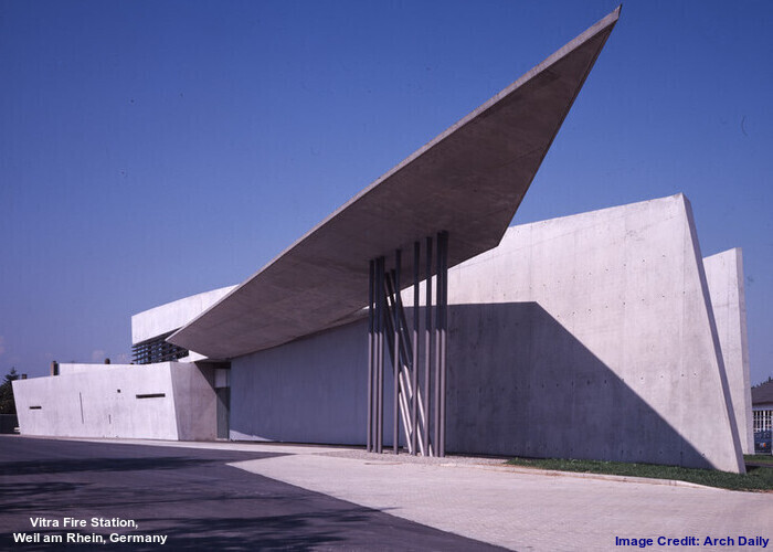 Hadid opened her own architectural firm, Zaha Hadid Architects, in London in 1980. However, she implemented her first major project, the Vitra Fire Station, in 1993 in Weil am Rhein, Germany. The fire station is famous for its sharp, angular and dynamic forms which are characteristic of her Deconstructivist style and represent a frozen explosion of the Suprematist Movement. The structure looks like a flying bird from a distance. The angular shapes and tilted walls of the fire station connect to and define the surrounding surface and landscape of the Vitra Campus.