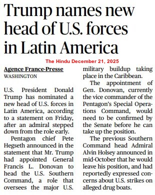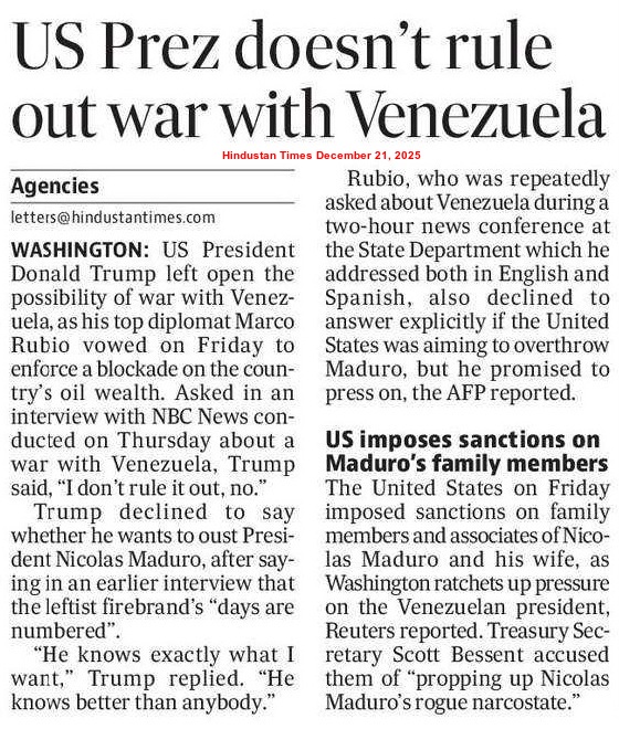 It may be noted that several US citizens, including three soldiers, were killed in Syria in the second week of December 2025. President Trump delivered a strong message of retaliation upon the arrival of their bodies in the US, stressing that the US forces would deal with all the Syrian militants in a proper manner. On December 19, the US forces identified the ISIS bases and bombarded them. Later, the President claimed that the successful operation destroyed a number of bases, apart from eliminating many ISIS terrorists.