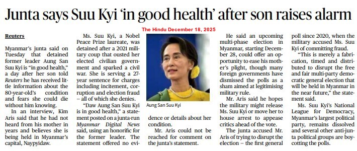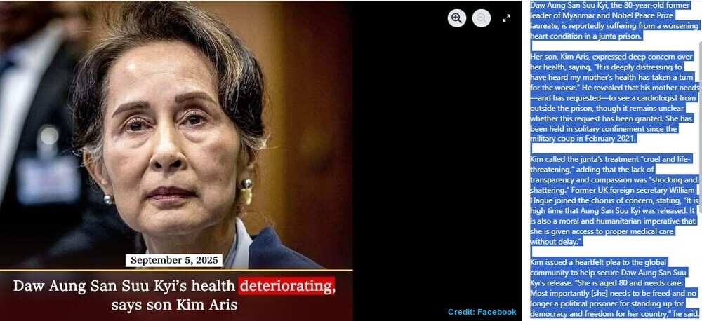 Dannian Kim Arundel Aris, the elder son of the Myanmarese politician, diplomat, author and political activist, recently expressed such a concern about his mother who is imprisoned by the Junta Government. In an interview with Reuters from Tokyo in the second week of December 2025, he stressed: “She’s got ongoing health issues. Nobody has seen her in over two years. She has not been allowed to contact her legal team, never mind her family. For all I know, she could be dead already.“
