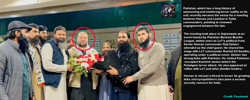 Reports suggest that senior Hamas commander Naji Zaheer and LeT commander Rashid Ali Sandhu were seen on the same stage at an event hosted by Pakistan Markazi Muslim League (PMML), which is widely believed to be the political front of the LeT, in Gujranwala in the second week of January 2026. An undated video of that event is circulating on social media in which many, including Sandhu, can be seen presenting bouquets to the chief guest, Zaheer. As per the global media, Zaheer and Sandhu held a meeting on the sidelines of the event.