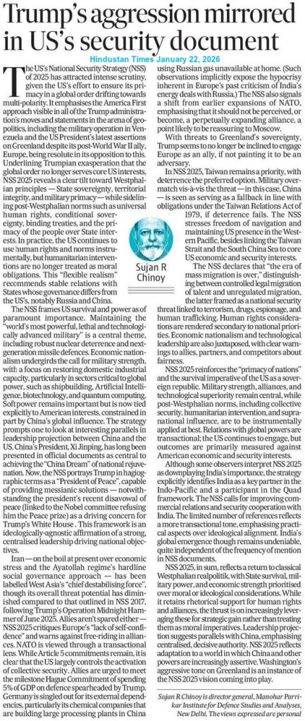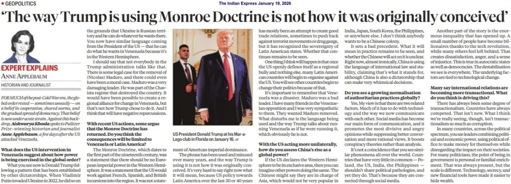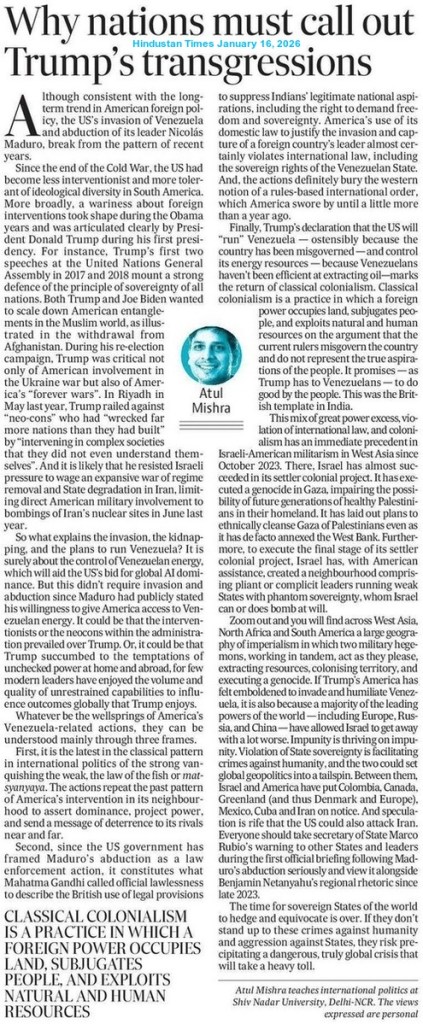 The US intervention (in the internal affairs of Venezuela) is also driven by geopolitical competition and domestic political compulsions. Although the importance of Venezuela’s vast energy resources may not be as significant as in previous decades because of various changes in the global energy market, its strategic importance has become a crucial factor in the context of current global uncertainty and supply disruptions. Most importantly, there is also a tendency to view Venezuela as a place for external intervention by rival powers, such as Russia and China. There are internal pressures, such as electoral politics, lobbying by diaspora groups and the rhetoric of promoting democracy, as well. Overall, President Trump’s move reveals the deep concern of Washington DC about losing strategic dominance in a competitive international system.