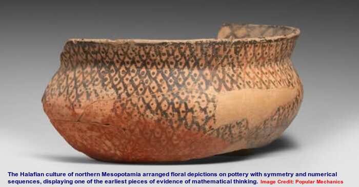 Archaeologists are quite certain that the Halafian culture of northern Mesopotamia painted floral patterns on clay pots that follow mathematical systems, such as geometry, symmetry and spatial long division. The recent study published in the Journal of World Prehistory has revealed how mathematics was known even during prehistoric times, without even the existence of numbers. Archaeologists from the Hebrew University of Jerusalem discovered the pottery from a prehistoric culture, known as the Halafian. This society used to live in northern Mesopotamia from 6200 to 5500 BCE. Analysis of the flower motifs on them showed that they were placed in a particular pattern and archaeologists have discovered around 700 fragments with such depictions.