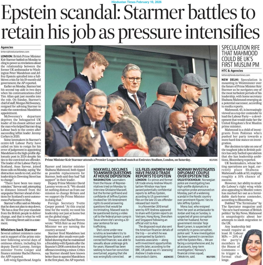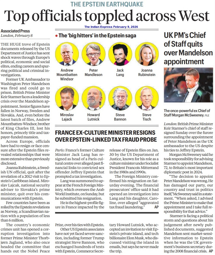 Incidentally, US billionaire Epstein was arrested on charges of sexual offenses in 2008 and released after serving 13 months in prison. He was imprisoned again on July 6, 2019 on federal charges for the sex trafficking of minors in Florida and New York. Epstein died in his cell on August 10, 2019. Apparently, a lot of confidential information about various public figures, politicians, celebrities and powerful individuals have been revealed since all his files, a collection of millions of documents, images and videos detailing the (criminal) activities of him and other public figures, were made public in November 2025. Some political, as well as business, leaders of Britain, Australia, Norway, India and the US, including President Donald John Trump, former US President Bill Clinton, Bill Gates and Elon Musk, are also among them.