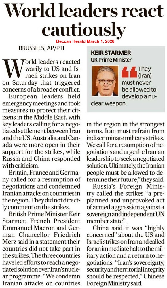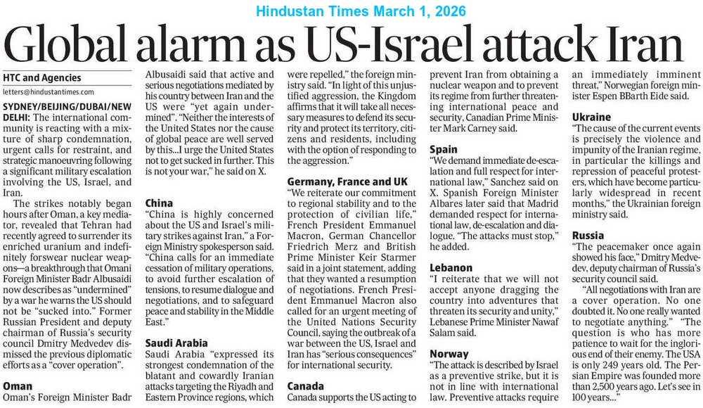 Later, President Trump wrote on his Truth Social platform: “Khamenei, one of the most-evil people in History, is dead. This is not only Justice for the people of Iran, but for all Great Americans, and those people from many Countries throughout the World, that have been killed or mutilated by Khamenei…” He sent a message of nation-building to Iranians and urged the Iranian nationals, who live in foreign countries, to return home safely. The US President also requested anti-Khamenei protesters to work together with the Iranian Military. He did not forget to mention that bombing of Iran would continue for at least another week in order to establish peace.