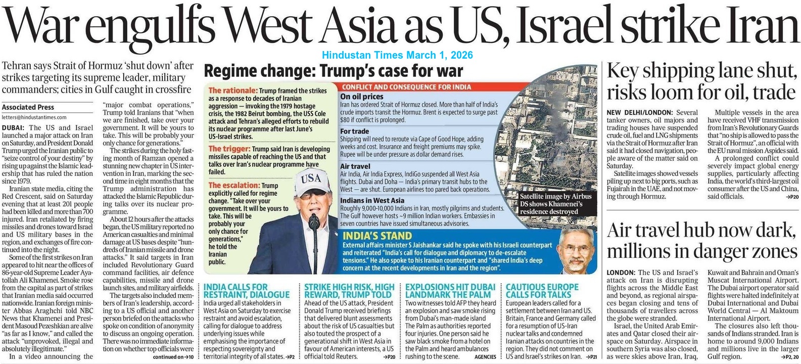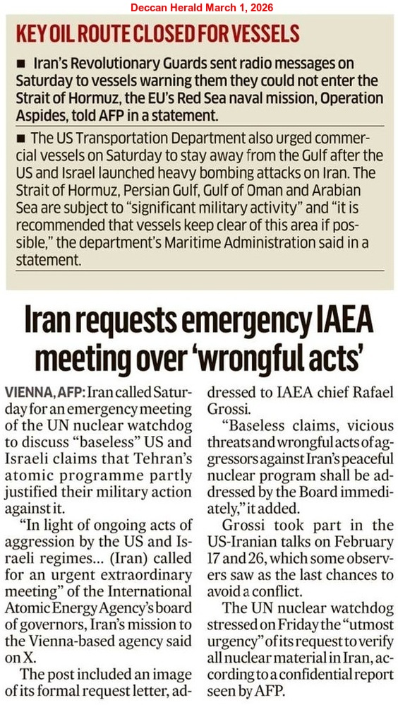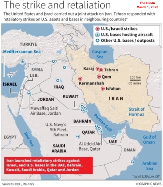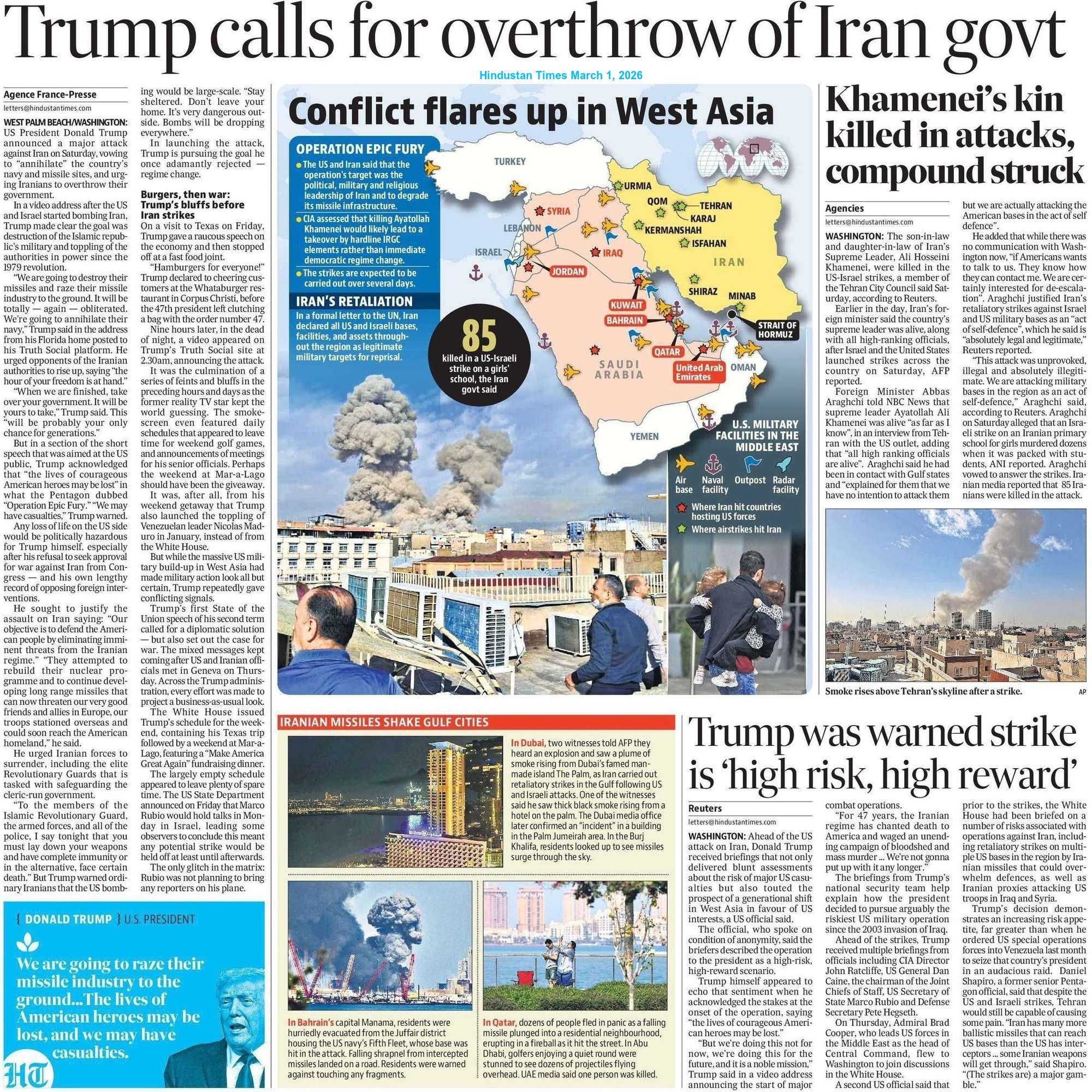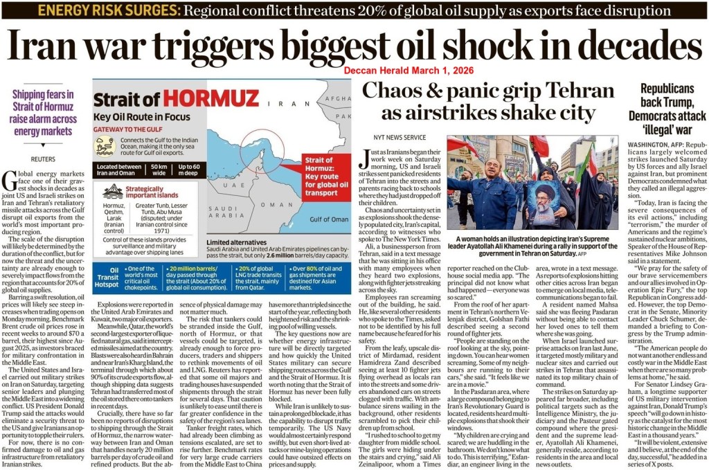 Iran retaliated on February 28 in response to the joint US-Israeli attacks and destroyed at least 14 US military bases in Bahrain, Iraq, the UAE, Qatar, Saudi Arabia and Israel. Authorities in the UAE confirmed that the Burj Khalifa was evacuated as a precautionary measure after explosions were heard in the area. The atmosphere of war in West Asia persists, driven by Iran’s intense conflict with Israel and the US.