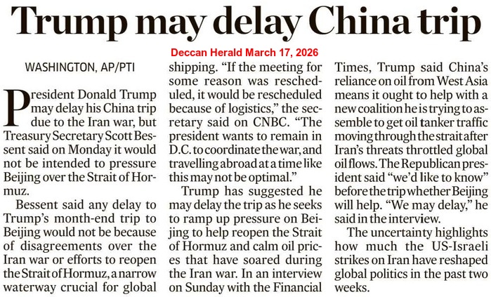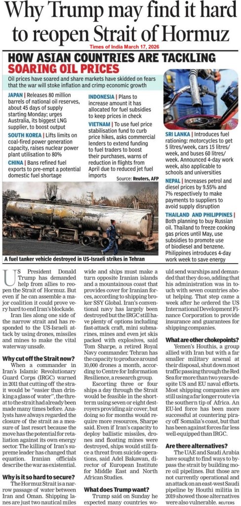 A day after President Donald John Trump hinted that the US forces might attack Kharg Island of Iran, yet again, “for fun”, the Houthis released a video message, stating that their “fingers are on the trigger” and the Bab el-Mandeb Strait would be blocked soon. It may be noted that nearly 8.8 million barrels of oil and about 10-12% of global maritime trade pass through the Bab el‑Mandeb Strait – a vital chokepoint at the southern end of the Arabian Peninsula, giving Red Sea access to the Suez Canal for global shipping – every day. According to market analysts, crude prices will increase further, if the narrow shipping corridor becomes the next flashpoint in the escalating Middle East crisis.