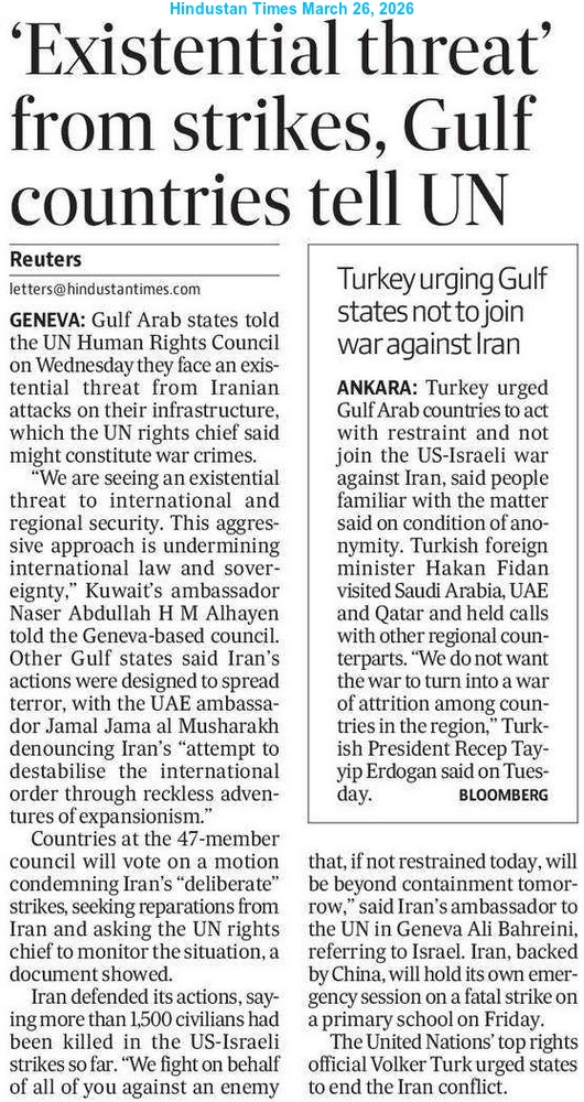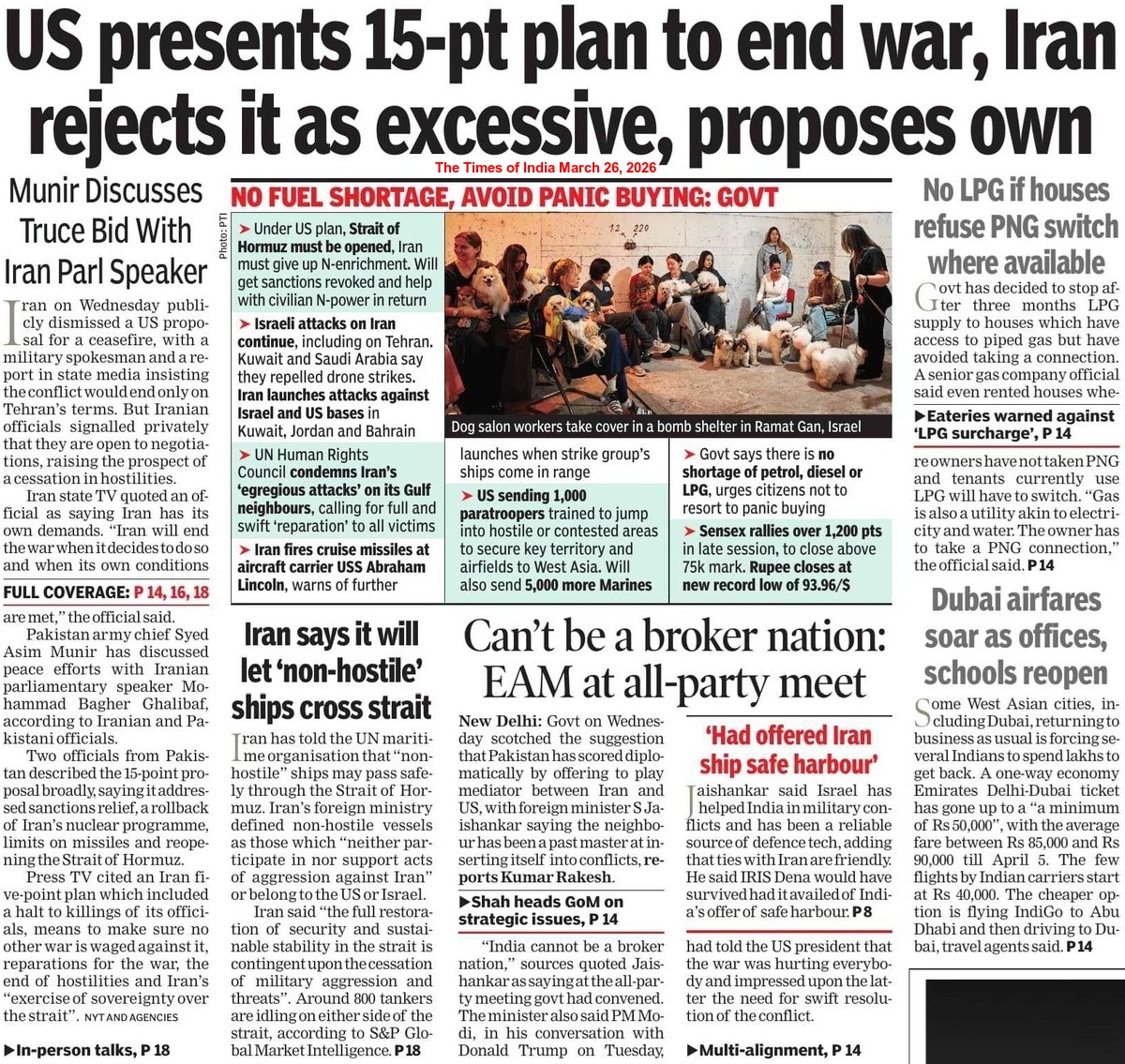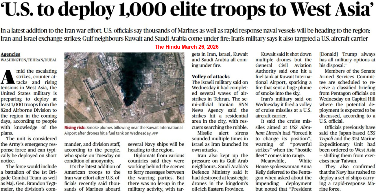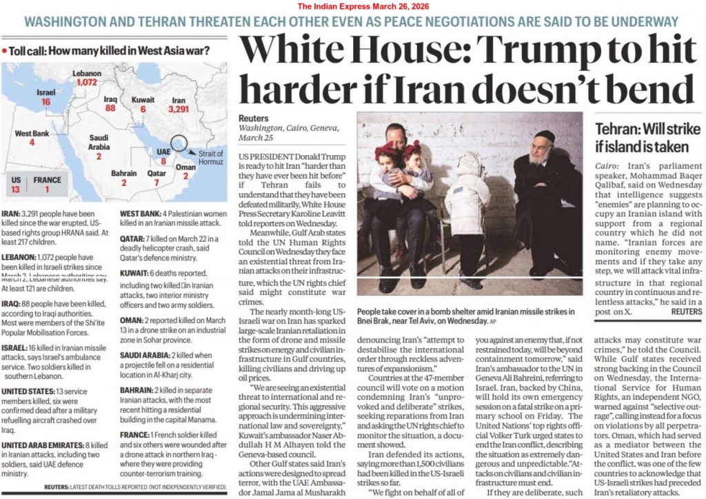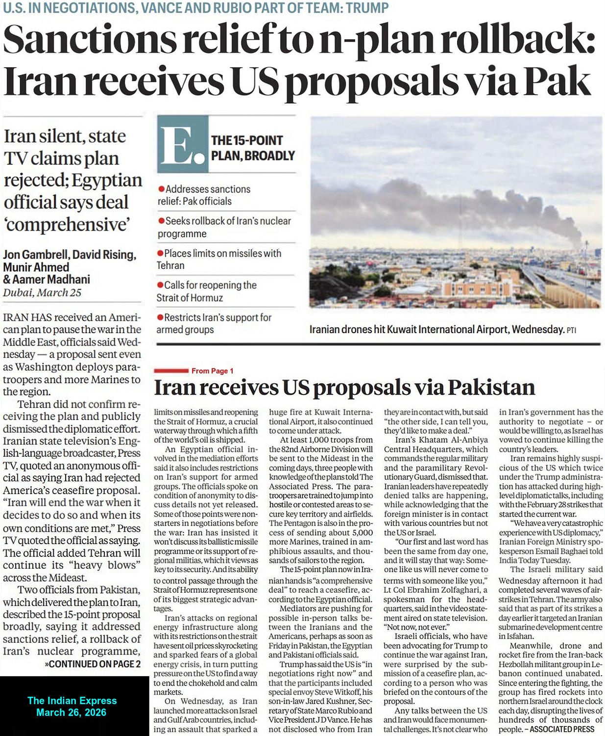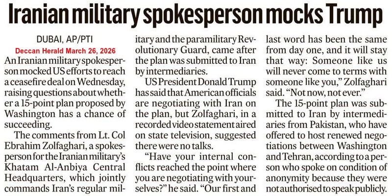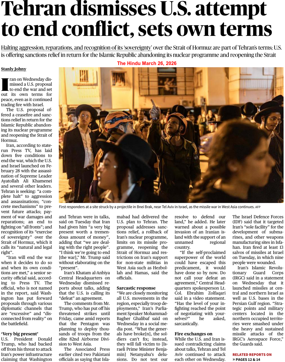 Even as discussions regarding ceasefire and negotiations go on, there is still no respite from attacks and counter-attacks in West Asia. Both Iran and Israel are engaged in direct military confrontations, featuring exchange of airstrikes, drone attacks and missile barrages. On March 25, 2026, Tehran claimed that President Donald John Trump reneged on his promise not to attack power generation facilities, stressing that the US forces targeted a power plant in Isfahan.