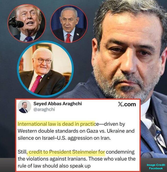 Abbas Araghchi, the Foreign Minister of Iran, has sharply criticised the selective application of international norms in a pointed post on X, while giving rare credit to German President Frank-Walter Steinmeier for condemning violations (of international law) against Iranians.
