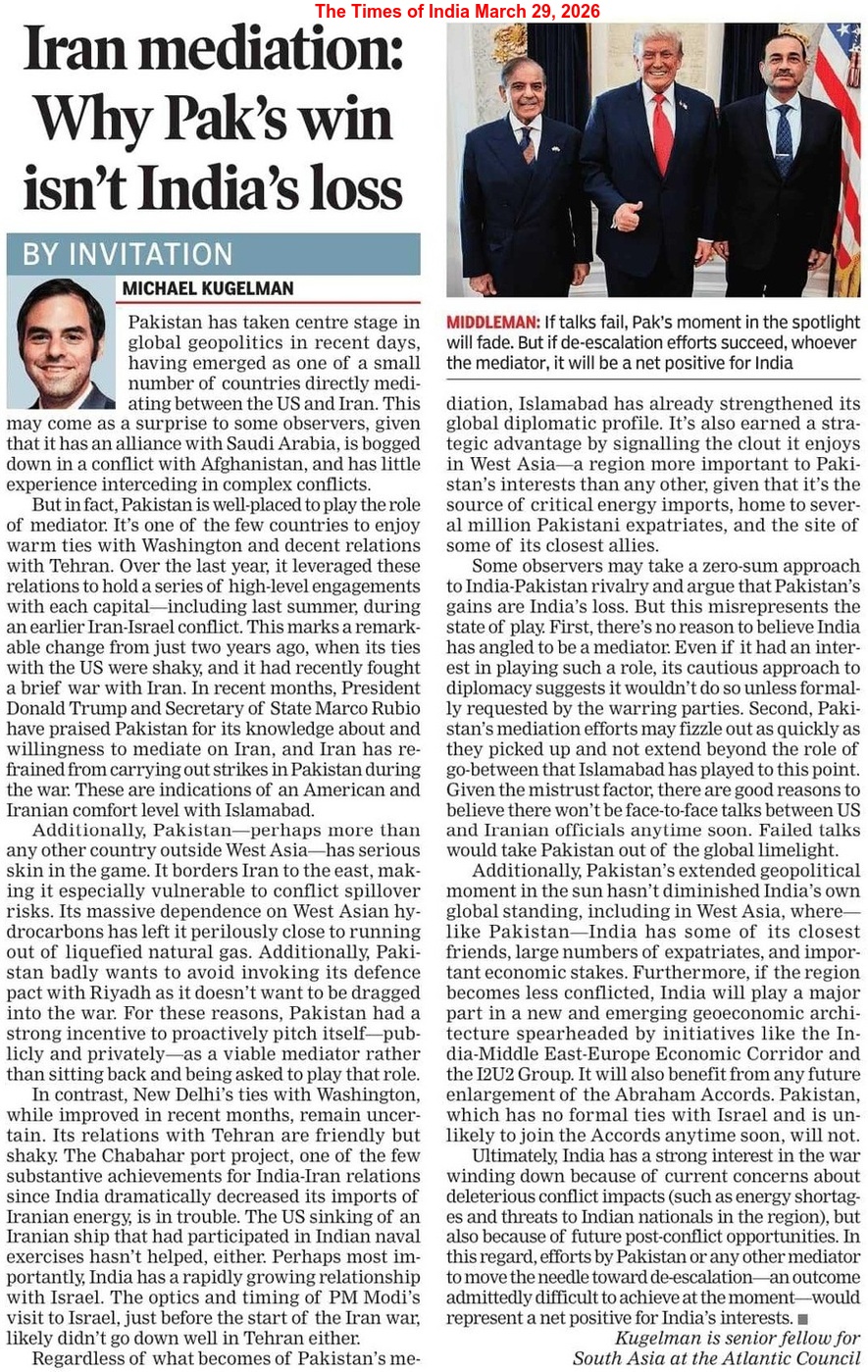 In such a scenario, Pakistan has got an opportunity to improve its global image after being criticised for being isolated. Success in mediating a major conflict could help the country to move beyond being seen merely as a security liability and to assert its relevance as a regional power broker. Hence, Islamabad has decided to make the most of these opportunities as it is uniquely positioned with “relatively good ties” with both Tehran and Washington DC, allowing the South Asian nation to act as a courier for messages at a time when traditional Middle Eastern mediators have come under fire.