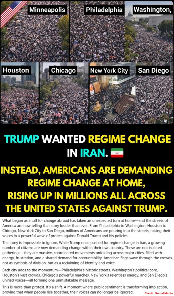 This time, protesters strongly criticised the President for waging a war against the Islamic Republic. A section of American citizens is against the joint military operation being conducted by the US and Israel against the West Asian nation. They argue that the ongoing armed conflict is futile as no country attacks the US. Protesters have called for an immediate halt to the US-Israeli military campaign against Iran, known as Operation Epic Fury, which began on February 28, 2026. They also opposed President Trump’s deportation policies and broader governance approach, with participants carrying anti-Trump signs and shouting pro-democracy slogans.