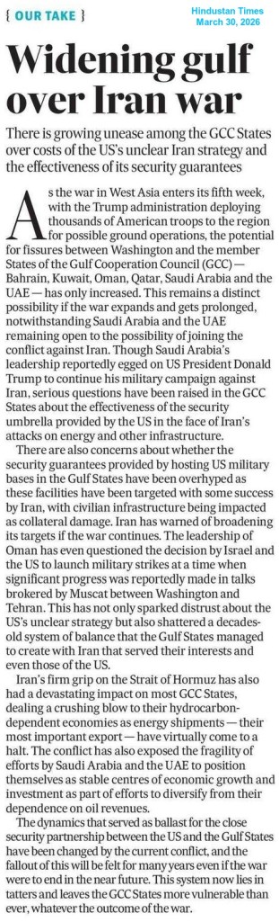 It may be noted that Mojtaba Hosseini Khamenei announced that the leverage of blocking the waterway “must continue to be used” in his first purported address as the new Supreme Leader of Iran. Now, Tehran has signalled that the leverage could be formalised. Also, Iranian lawmakers are considering a bill that would require countries using the Strait for shipping fuel and goods to pay tolls, with an adviser to the Supreme Leader mentioning a new regime for the Strait of Hormuz after the war. This new system would allow the Islamic Republic to impose maritime restrictions on adversaries and effectively tie access to one of the world’s most critical shipping lanes to its geopolitical disputes.