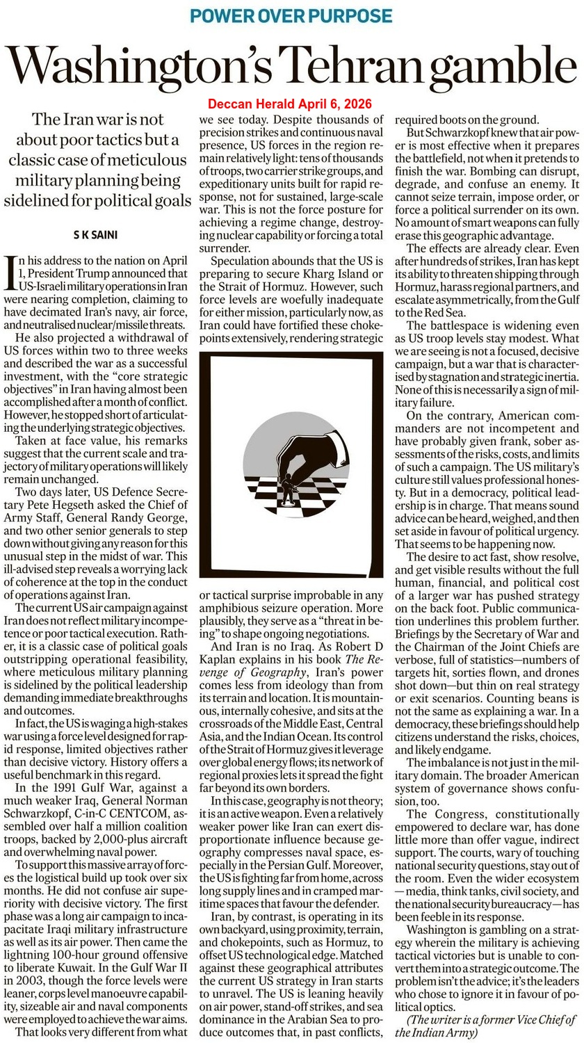 Meanwhile, back in the land of the clueless, President Trump was forced to respond because of the growing pressure – both internally and from around the world – against his illegal and disastrous war in Iran. In an extremely defensive April 1, 2026 address to the nation, the President said that the US was “on track to complete all of America’s military objectives shortly“, claiming that Iran “has been eviscerated and essentially is really no longer a threat“. Cynically, he stressed that this war of aggression was “necessary for the safety of America and the security of the free world“, making sure to say the words “nuclear weapon” repeatedly in order to induce fear among the gullible. While still no clear objective exists, the closest thing was Trump’s statement that: “We’re going to hit them extremely hard over the next two to three weeks. We’re going to bring them back to the stone ages where they belong. In the meantime, discussions are ongoing… Yet, if during this period of time no deal is made, we have our eyes on key targets. If there is no deal, we are going to hit each and every one of their electric generating plants very hard and probably simultaneously.“