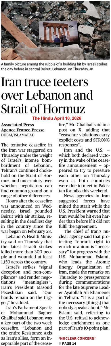 For his part, Iranian Foreign Minister Abbas Araghchi said: “The Iran-US Ceasefire terms are clear and explicit: The US must choose – ceasefire or continued war via Israel. It cannot have both.” He added: “The world sees the massacres in Lebanon. The ball is in the US court, and the world is watching whether it will act on its commitments.“