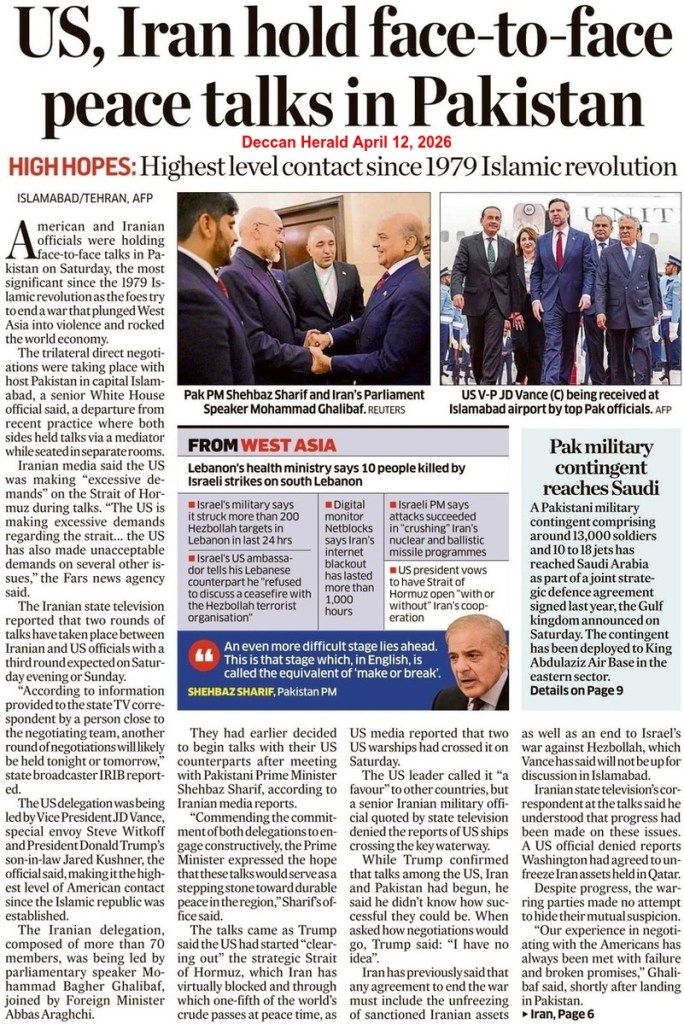 Vance told the Pakistani media: “We were constantly in communication with the team because we were negotiating in good faith. We leave here with a very simple proposal, a method of understanding that is our final and best offer. We’ll see if the Iranians accept it.” The Vice President informed the press that he had spoken to President Donald John Trump “a half dozen times, a dozen times, over the past 21 hours” and also spoke to Secretary of State Marco Rubio, Treasury Secretary Scott Bessent and Admiral Brad Cooper, the Head of the US Central Command.