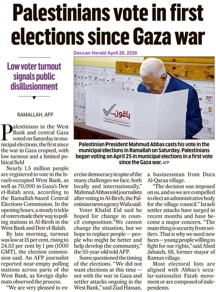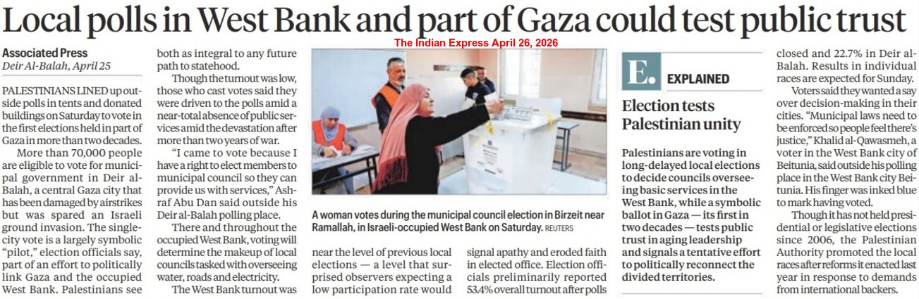 Palestinians voted for the first time since 2006 as they took part in local elections on April 25, 2026. Although the Municipal and Village Council Elections are scheduled to take place every four years, it has not been possible to hold elections in this Israeli-occupied, war-torn country over the past two decades. This time, residents of the West Bank and the Gazan city of Deir al-Balah got an opportunity to cast their votes.